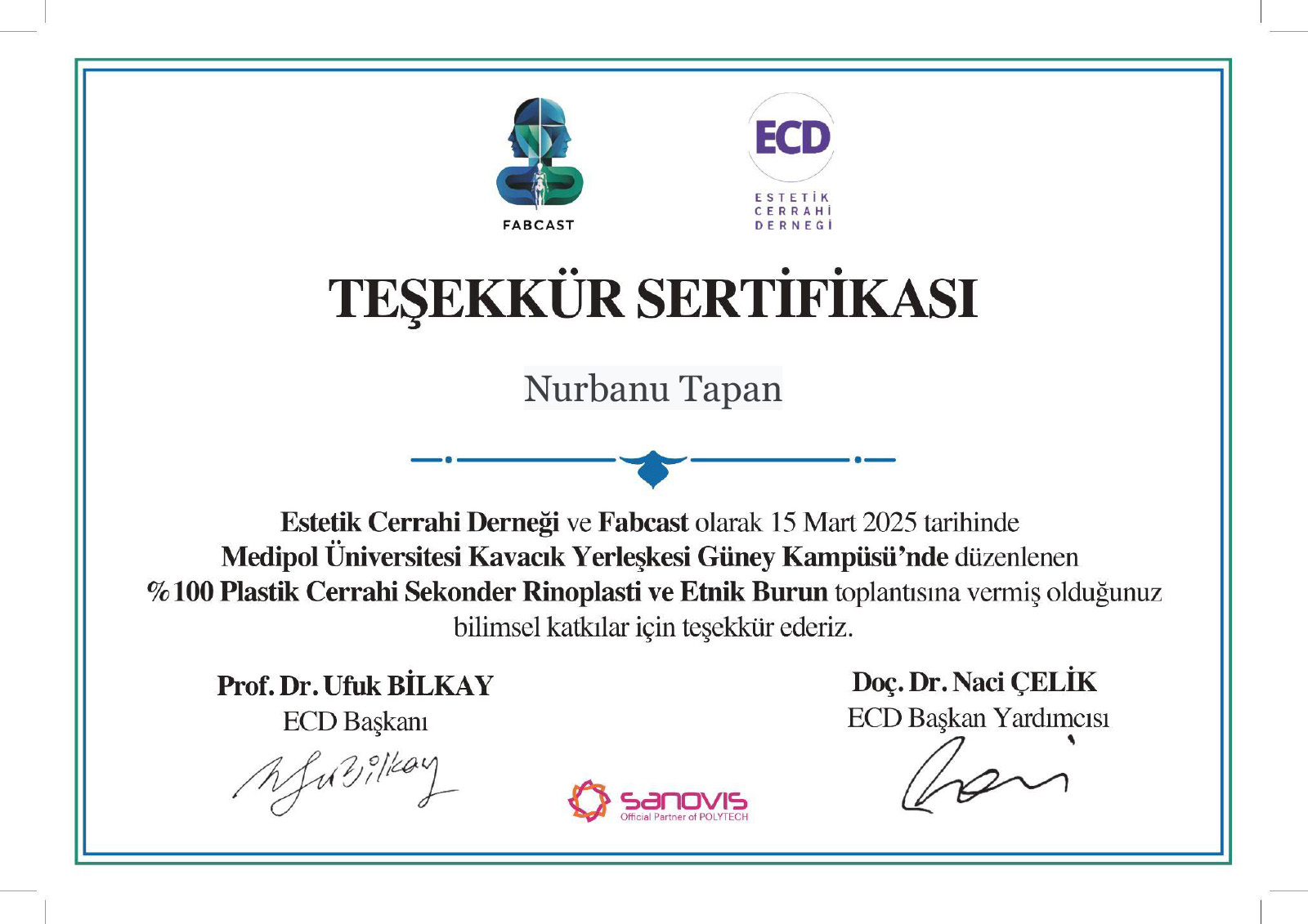 Bu dönemde multidisipliner cerrahi ekipler içerisinde aktif rol almış, ileri cerrahi teknikler konusundaki yetkinliğini geliştirmiş ve doğal, dengeli ve uyumlu sonuçlar elde etmeyi hedefleyen bir tedavi anlayışı benimsemiştir. Uzmanlık eğitimi sürecinde yalnızca teknik mükemmeliyet değil; hasta güvenliği, etik uygulama ve her hastanın anatomik yapısı ile beklentilerine özel planlama ilkeleri de temel yaklaşımını oluşturmuştur.