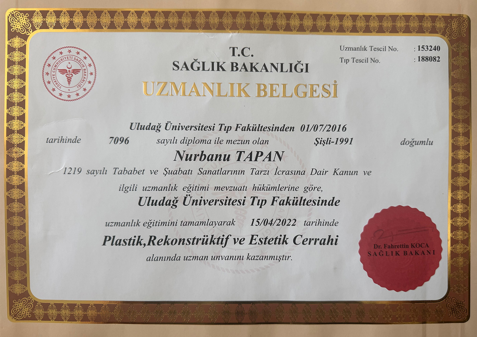 Uzmanlık eğitimini, bölgenin önde gelen akademik merkezlerinden biri olan Bursa Uludağ Üniversitesi Tıp Fakültesi Hastanesi Plastik, Rekonstrüktif ve Estetik Cerrahi Anabilim Dalı’nda tamamlamıştır. Eğitim süreci boyunca meme cerrahisi, vücut şekillendirme, yüz estetiği ve kompleks rekonstrüktif vakalar dahil olmak üzere geniş bir yelpazede estetik ve rekonstrüktif cerrahi deneyimi kazanmıştır.